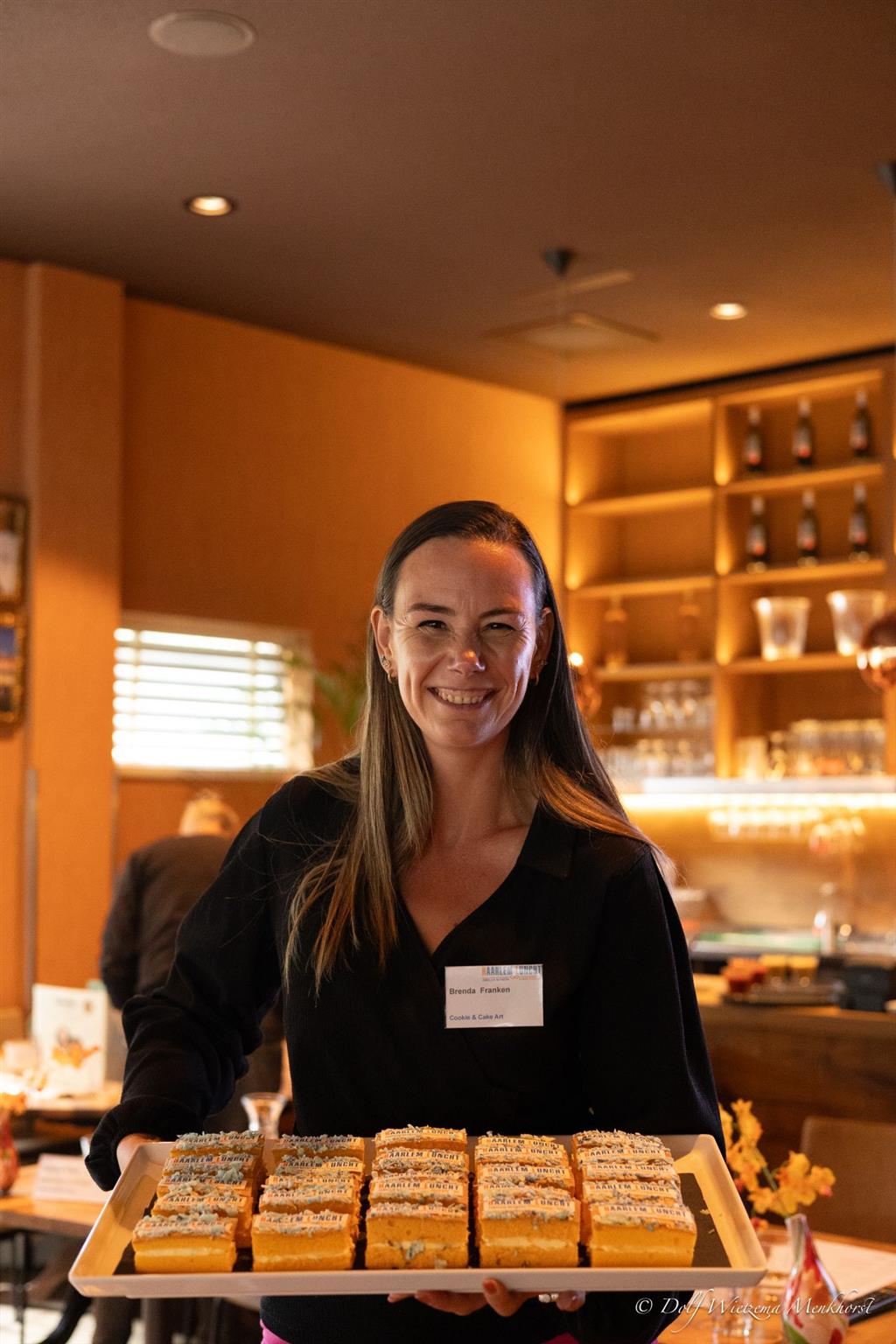 We proostten met champagne en genoten van petit fours met ons logo – een feestelijke start van een netwerk dat draait om verbinding, kwaliteit, vertrouwen en onderlinge steun. (Met dank Hilde Slagter van Gall & Gall Heemstede en Brenda Franken van Cookie & Cake Art)